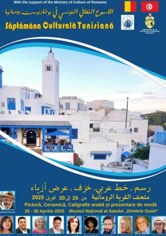 Muzeul Naţional al Satului “Dimitrie Gusti” și Ambasada Republicii Tunisiene vă invită în perioada 26 — 30 aprilie 2025 la Săptămâna Culturală Tunisiană în România.