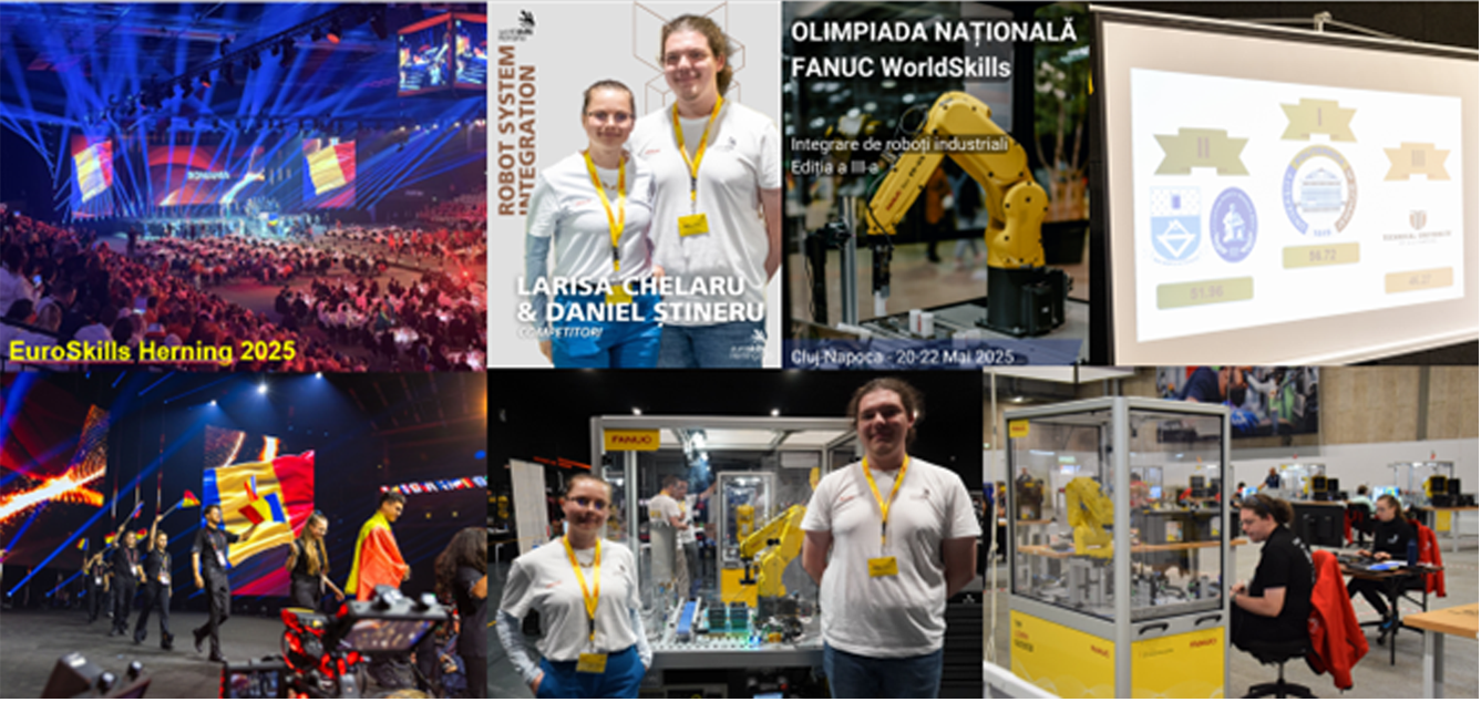 Cea de a treia ediṱie a Olimpiadei Naṱionale de Integrare Roboṱi Industriali FANUC – WorldSkills s-a desfăsurat la Cluj-Napoca în perioada 20 – 22 Mai 2025 cu participarea Universităṱii Lucian Blaga din Sibiu, Universităṱii Tehnice Gheorghe Asachi din Iași, Universităṱii Naṱionale de Ştiinṱă şi Tehnologie Politehnica din Bucureşti, Universităṱii Tehnice din Cluj-Napoca, Universităṱii Politehnice din Timişoara şi Universităṱii Sapienṱa din Târgul Mureş.