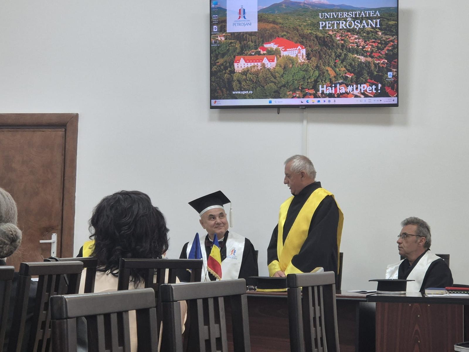 POLITEHNICA București anunță, cu bucurie și profundă recunoștință, că domnul profesor Augustin Semenescu, Prodecan al Facultății de Știința și Ingineria Materialelor, a fost distins pe data de 11 iunie 2025 cu titlul de Doctor Honoris Causa, oferit de Universitatea din Petroșani. Această onoare vine ca o recunoaștere a unei cariere remarcabile, clădită pe excelență, pasiune și devotament față de știință, educație și oameni.